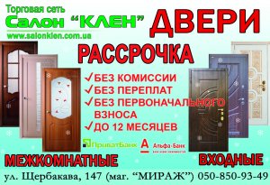 Торговая сеть «Салон Клен» предлагает Вам входные, межкомнатные двери и металлопластиковые окна – как собственного производства, так и производства фабрик Украины, России и Белоруссии со склада и под заказ. Торговая сеть «Салон Клен» на дверном рынке работает с 2005 года.