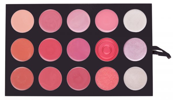 Планшетка состоит из 15 помад и блесков для губ.