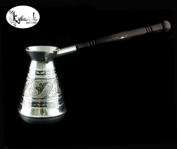 Серебрянная турка 875 пробы. Изготовленна в классическом кубачинском стиле. Ручная работа гравировка и чернь. Вес 209,00 грм.