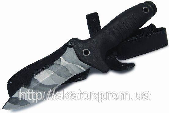 «Мурена»Нож «Мурена» разработан на базе изделия «Игла» для водолазов. Клинок выполняется с камуфляжным покрытием. По обуху клинка идет серейторная заточка, в районе носика выполнен гарпун. Рукоятка ножа разработана специально так, что бы удобно было работать и в водолазных перчатках и без них. Затыльник ножа металлический и плоский, что позволяет использовать его в качестве молотка. Ножны выполнены из пластика, но возможна комплектация ножнами из кожи. Материал рукояти – термоэластопласт. Технические характеристики: Общая длина, мм 261 +/– 5мм Длина клинка, мм 132 Наибольшая ширина клинка, мм 33 Толщина обуха, мм 5 Ширина рукояти (в сред. части), мм 36 Толщина рукояти (в сред. части), мм 28 Твердость клинка, HRC 57-62 Материал клинка 70Х16МФС (по патенту RU236957C1) Вес, г 330 Другие товары магазина Акатор: |