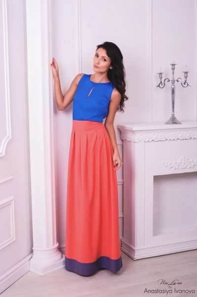 Дизайнерская юбка ультрамодного цвета трапециевидного силуэта придаст вашему образу невероятную элегантность, а вставка из контрастной ткани по подолу подчеркнет чувство стиля.