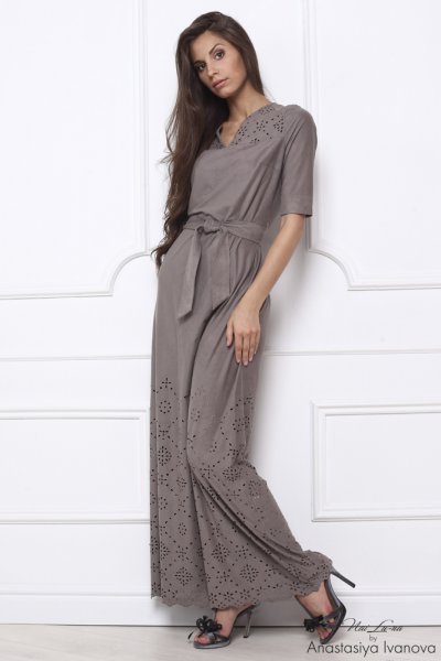 Длинное серое платье из искусственной кожи с оригинальным перфорированным узором - обязательный must have этого сезона!