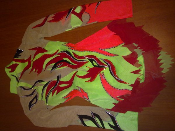 новый, яркий конкурсный купальник для художественной гимнастики.