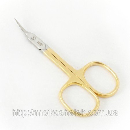 Ножницы для кутикулы загнутые с никелированными лезвиями и позолоченными ручками 01-158GL.