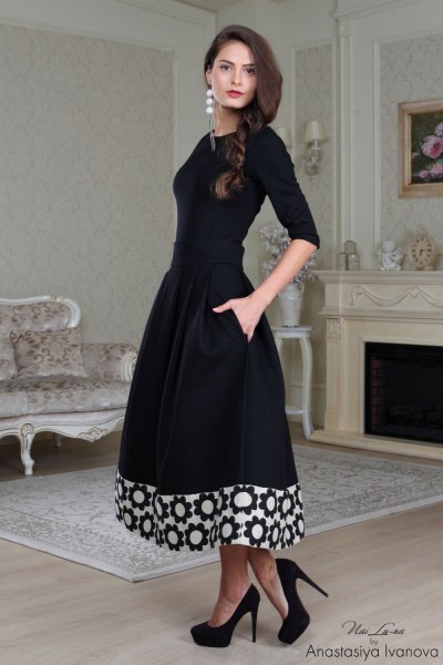 Светский раут, романтический ужин с поклонником, обычная вечерняя прогулка – этот наряд вы можете выбрать для любого события, которое обязательно станет ярким и запоминающимся! Классический черный цвет, который гармонично дополняет креативная расцветка подола, – этой осенью такой образ обязательно должен найти место в вашем гардеробе. Длина миди, которая в этом сезоне особенно в моде, подчеркнет ваше чувство стиля, а женственный силуэт станет чудесной огранкой для вашей фигуры.