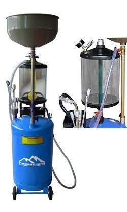 Мобильная установка емкостью 80 л для сбора отработанного масла путем слива в подъемную ванну емкостью 13 л или отбора через специальные щупы; стеклянная предкамера для проверки качества масла емкостью 10 л, насос Вентури для ускоренного слива масла