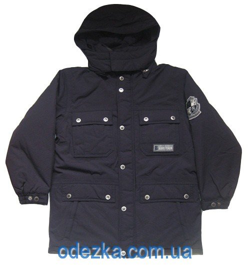 Куртка для мальчика класса \\\"термо\\\" (от 0 до -40°С), удлененная, с отстегивающимся капюшоном. Спереди украшена накладными карманами и нашивным элементом на рукаве.