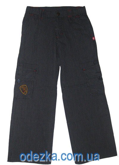 Брюки для мальчика в полоску, свободного покроя с накладными карманами по бокам.