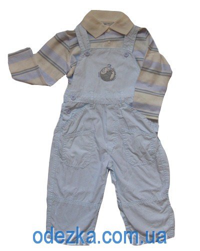 Комплект для мальчика, состоит из двух вещей - рубашки-поло и полукомбинезона.