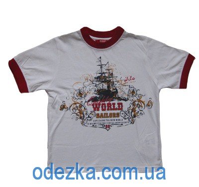 Футболка для мальчика, спереди декорирована принтовым рисунком.