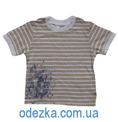 Футболка в полоску для мальчика, спереди украшена принтовым рисунком.
