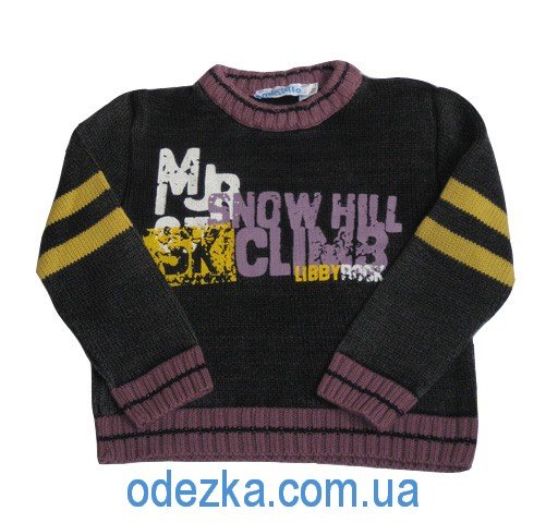 Свитер для мальчика с горловиной, спереди декорирован принтовым рисунком.