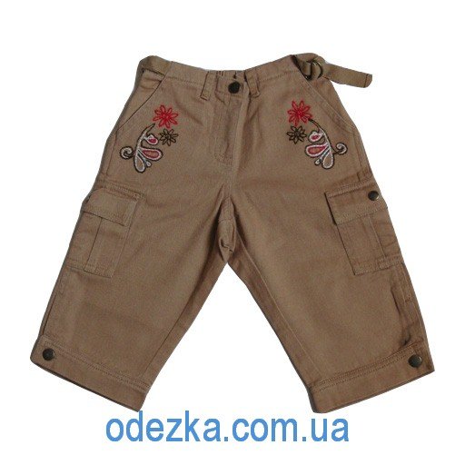 Капри для девочки спереди украшены оригинальной вышивкой и накладными карманчиками.